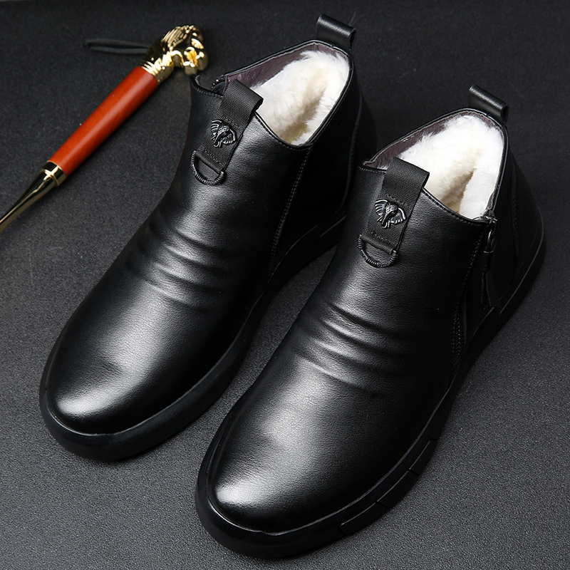 Martin Boots Man Warm Winter Glint Thickened Genuine Leather Wool Casual Cotton Leather Shoes Non-slip Soft Bottom Men Cotton Shoes Men