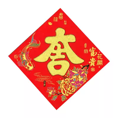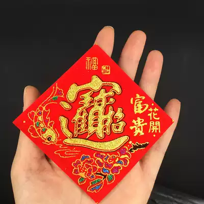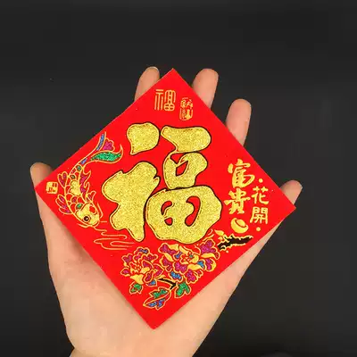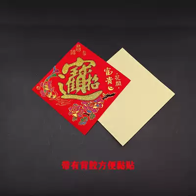 Flannel self-adhesive color peony flower small blessing stickers big Ji paste Zhaocai Jin treasure paste refrigerator glass door wine cabinet decoration