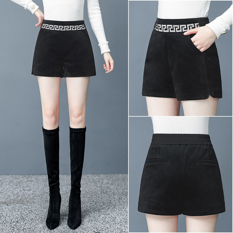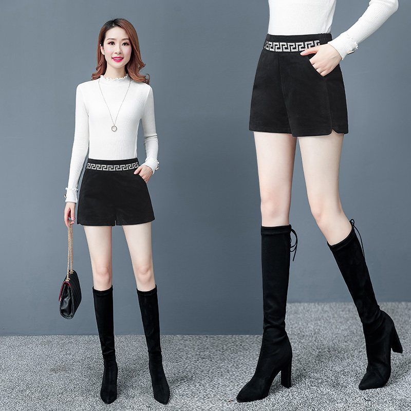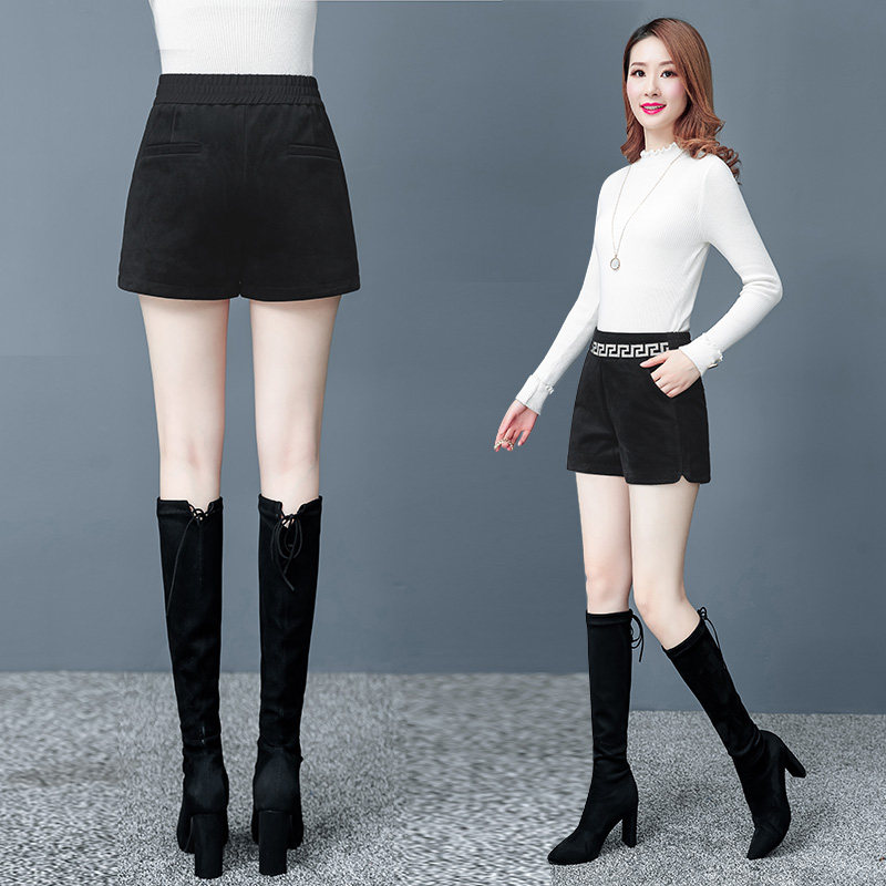 Flush wide leg shorts women winter 2020 new wear elastic high waist casual A-line pants show thin leggings boot pants
