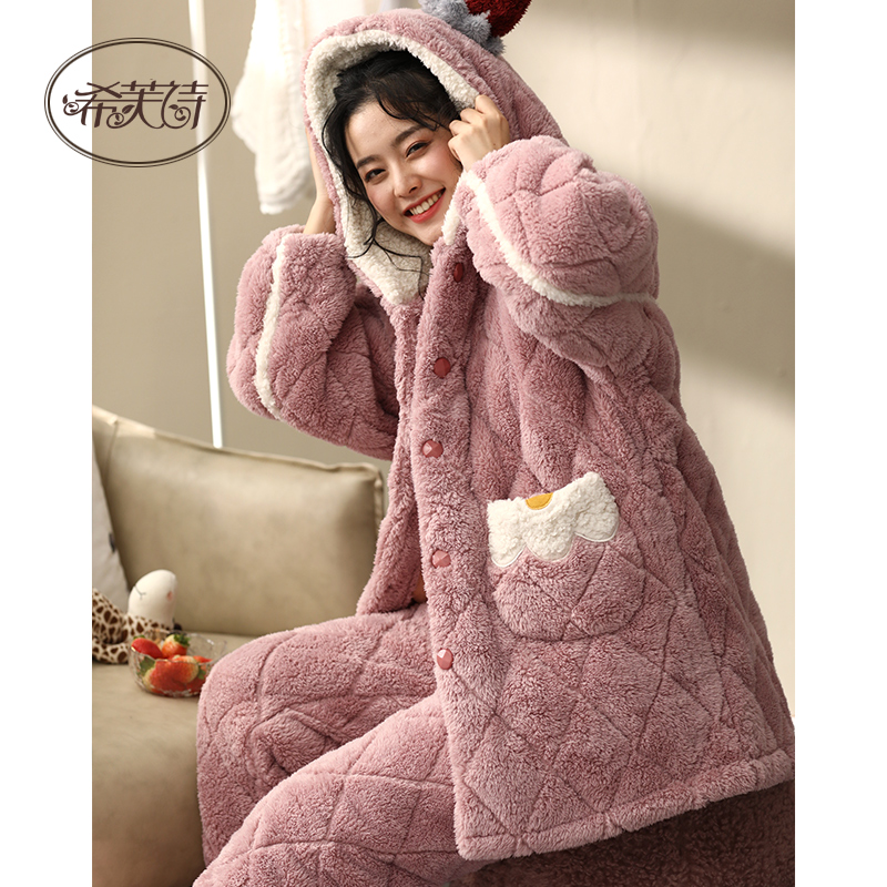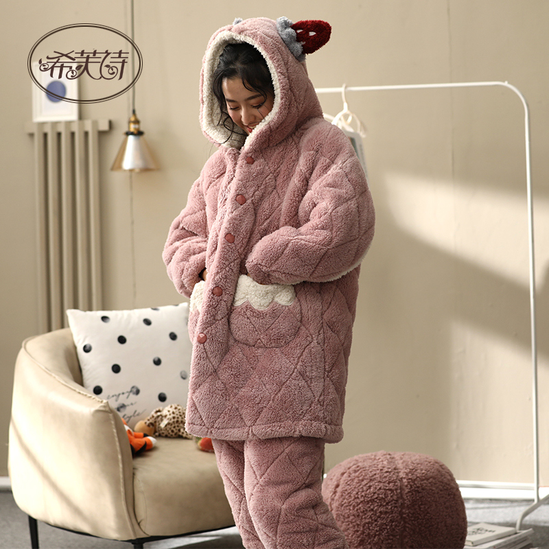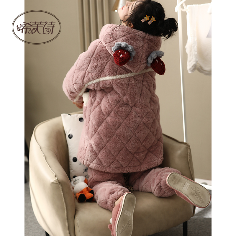 2022 new three-layer thickened coral fleece pajamas women's autumn and winter flannel homewear suit winter