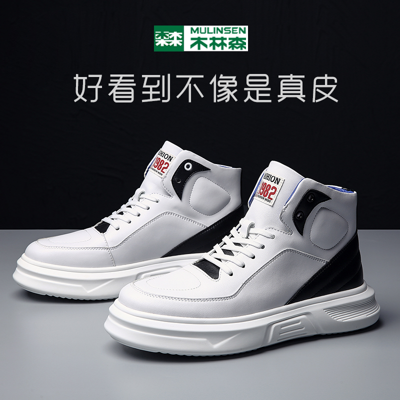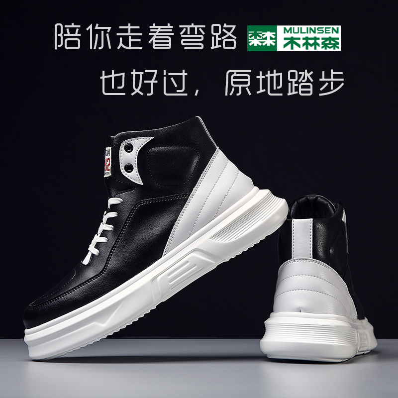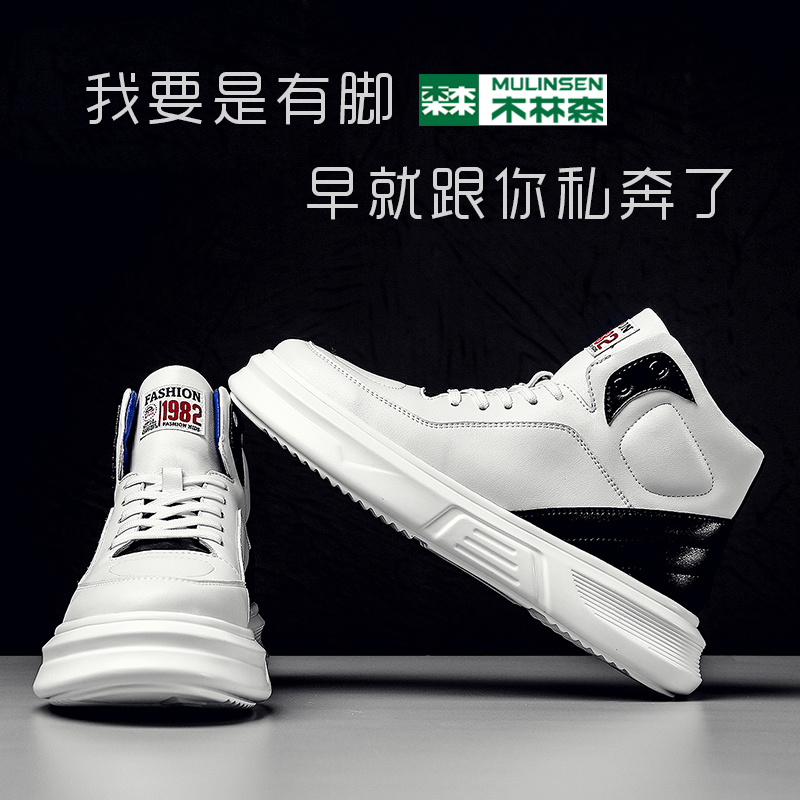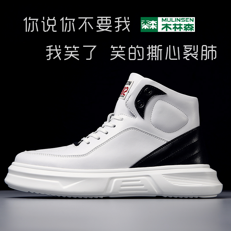 Mulinsen men's shoes 2022 winter new Korean version of the trendy shoes leather high tube small white shoes sports casual shoes men