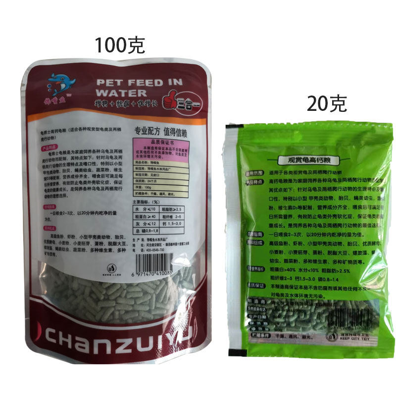 20g turtle food (small grain)*2 packs 100g turtle food (medium grain)*1 pack 100g turtle food (medium grain)*3 packs 100g turtle food (medium grain)*5 packs of 100g turtle