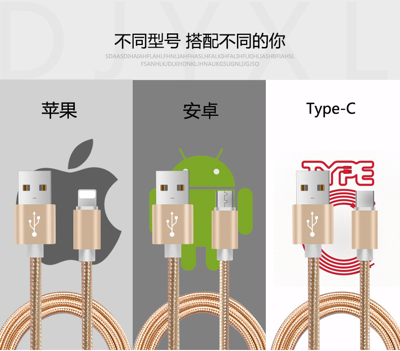 Nylon braided Android data cable charging cable high-speed usb Apple iphonex fast charge flash charge Xiaomi Samsung oppovivo cool type-c mobile phone lengthened by 2 meters