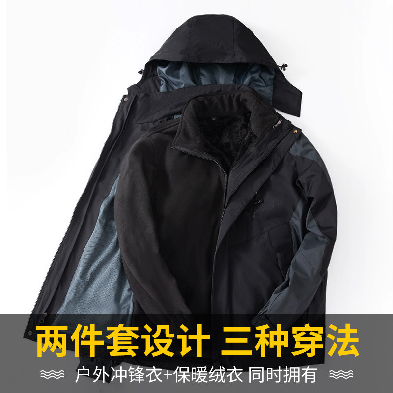 Stormtrooper jacket men's velvet thickened three-in-one detachable windproof jacket Women's winter outdoor men's cold ski suit