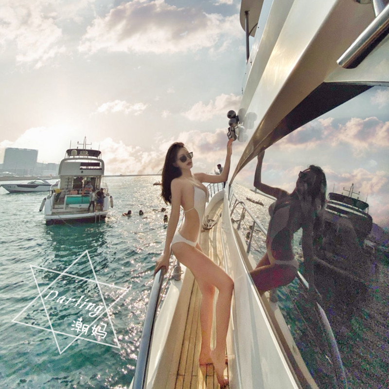 Original high-end European and American long skirt bikini eye-catching hollow sexy backless hot hanging neck one-piece swimsuit women's two pieces