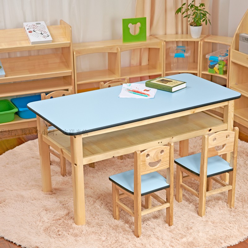 Training early education institution solid wood splicing table and chair combination children's learning table handmade table art table special Chinese painting table