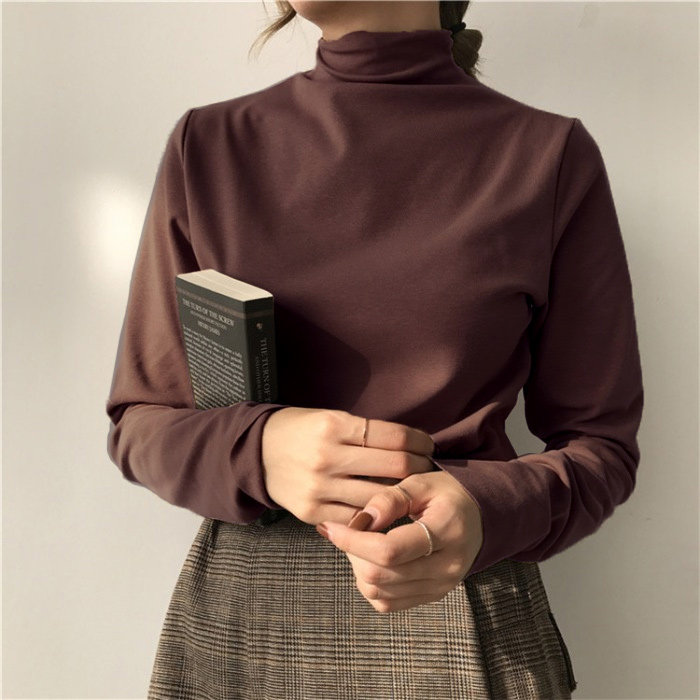 Modal half-high collar bottoming shirt women's long-sleeved autumn and winter 2020 new foreign style black plush fleece thick top