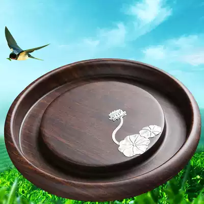 Ebony Wood raising pot bottom sitting round teapot by coaster solid wood hand-painted lotus tea ceremony spare parts tea cup mat