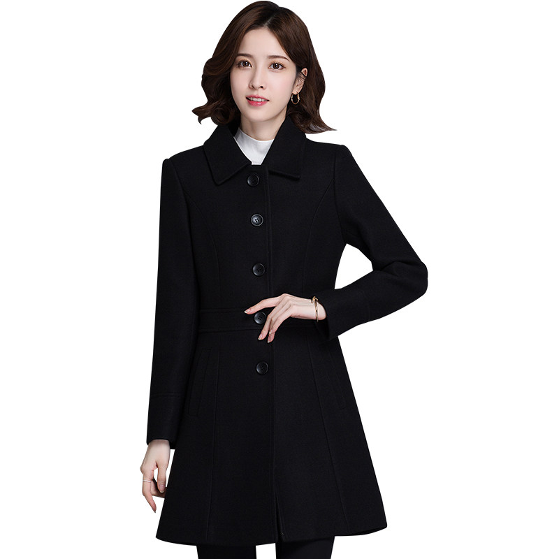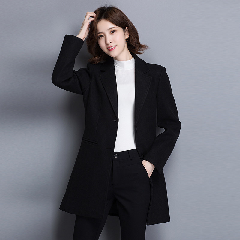 Hotel Front Desk Business work clothes Son Coat Woman Long Version of the Body Black Cashier Works Clothes Autumn Winter Thickening