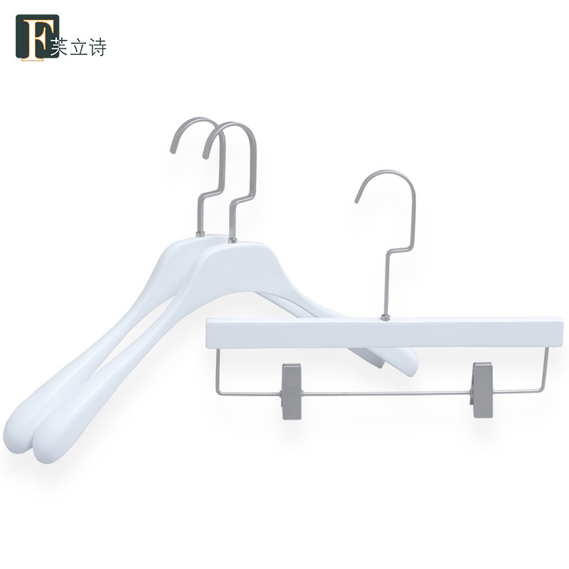 Fleece white wooden hangers Clothing store special hangers Household wooden clothes hangers custom hangers logo clearance