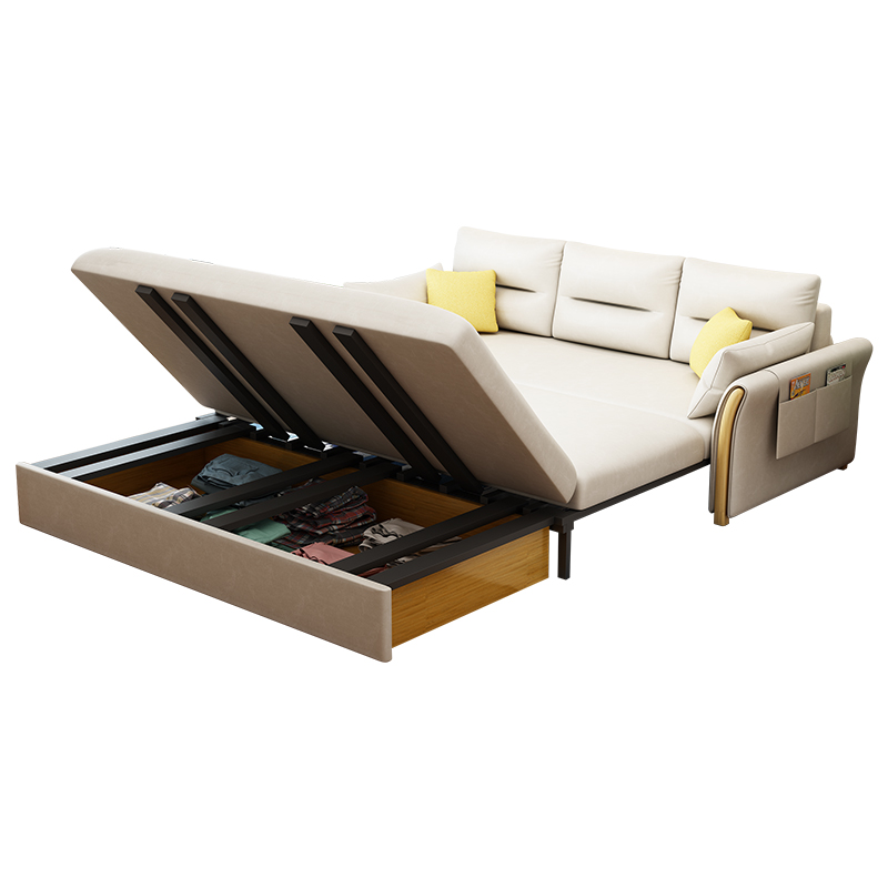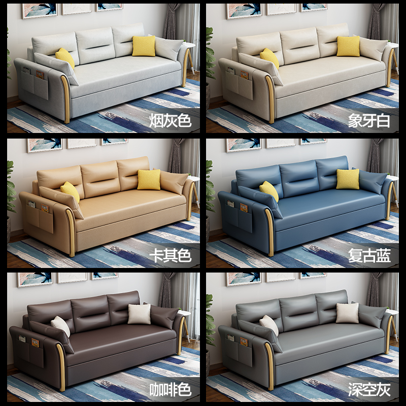 Multi-functional foldable fabric sofa bed solid wood push-pull dual-use economical single small apartment double Nordic