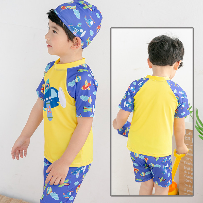 Yellow airplane Yellow airplane beach bag Yellow airplane goggles Yellow airplane sleeves Yellow airplane swimming ring Yellow airplane goggles Swimming cap Nose clip Earplug bag Yellow airplane sleeves Six pieces