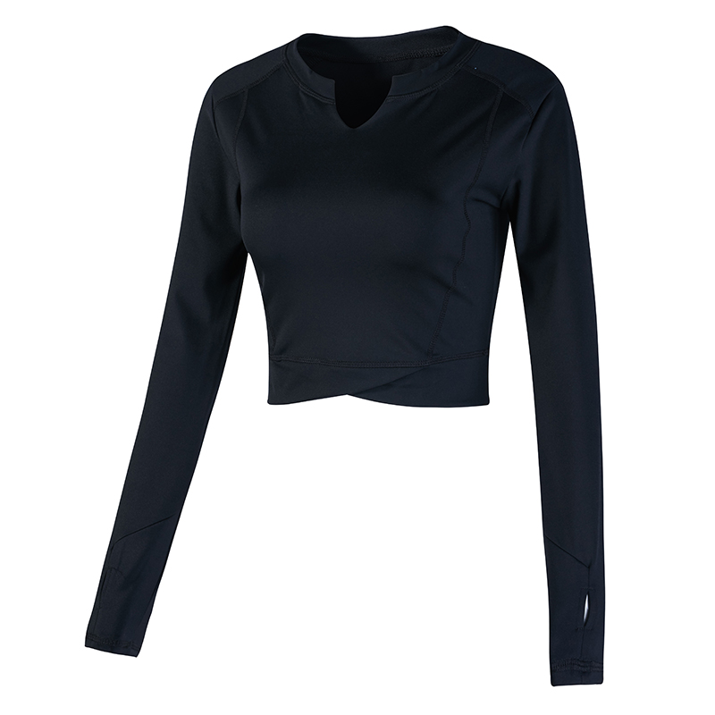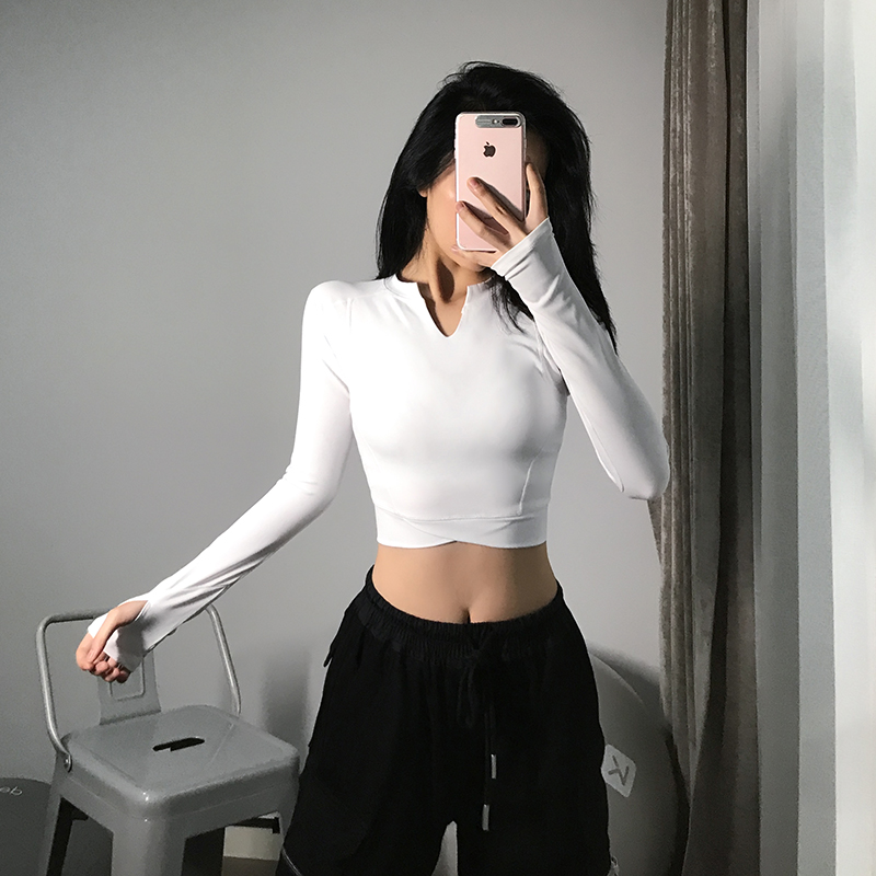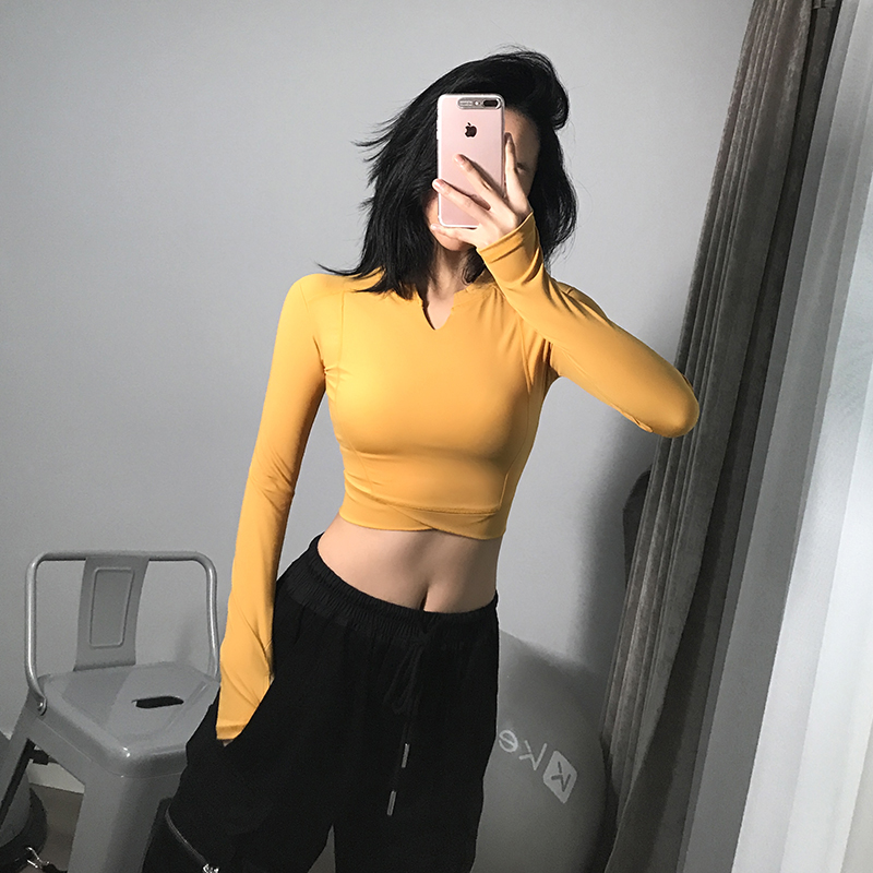 Sexy umbilical tight sports top women's elastic thin yoga suit long-sleeved running training fitness clothes spring and summer models
