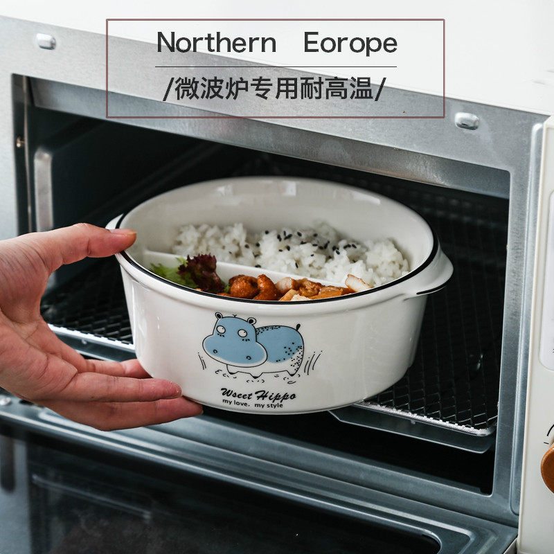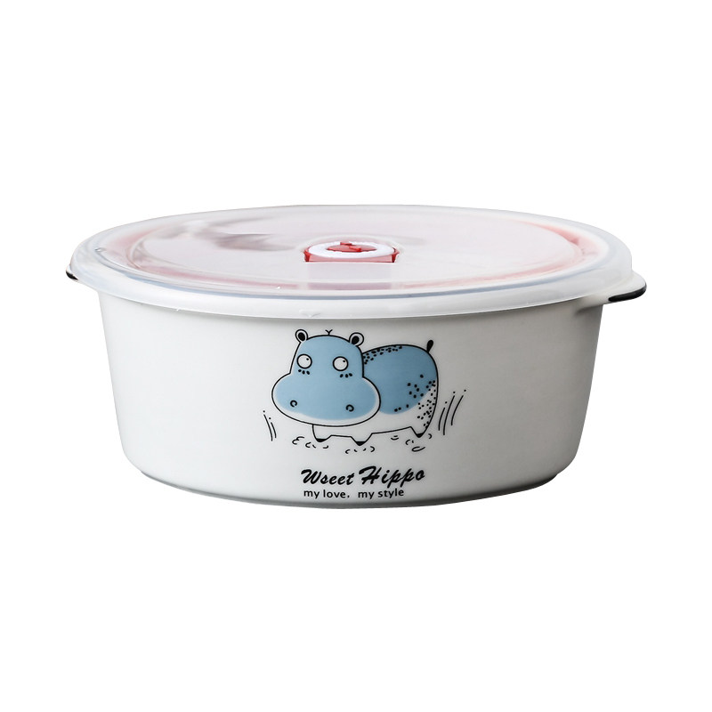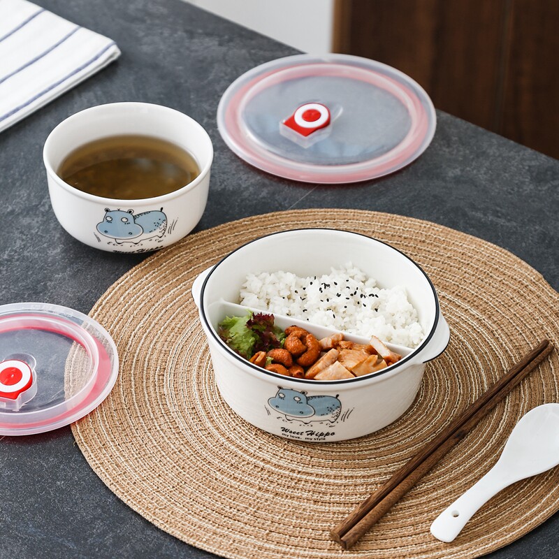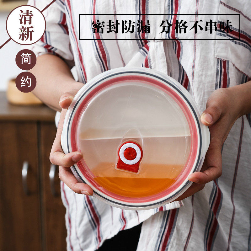 Ceramic lunch box, round compartment, two compartments, sealed microwave oven, separate bowl, office worker's lunch box with lid, fresh-keeping box