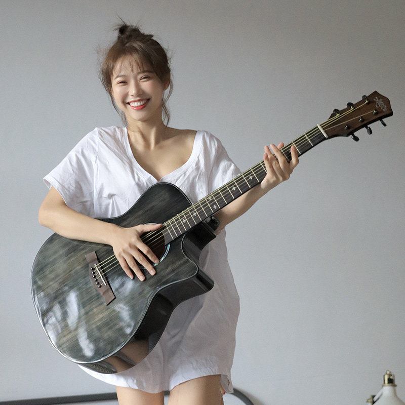 Bright veneer guitar beginners 41-inch girls' special boys' models entry-level self-study 40-inch wooden guitar ink bamboo