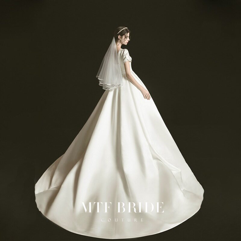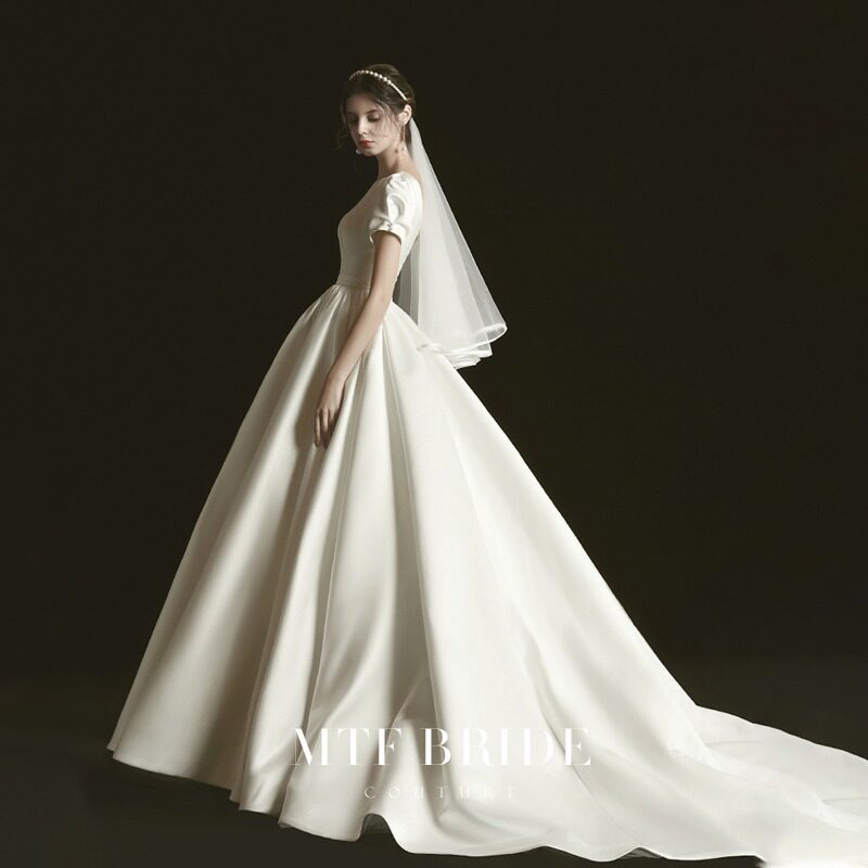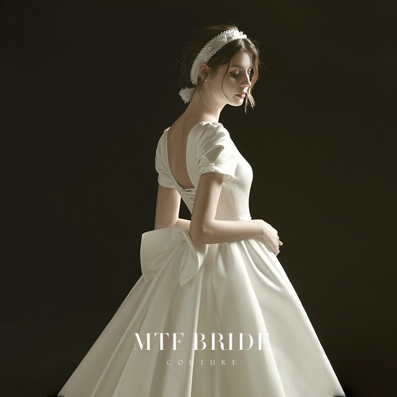 Man Tingfang (Miss Lillian)satin wedding dress 2021 new trailing bride female French vintage Hepburn wedding dress