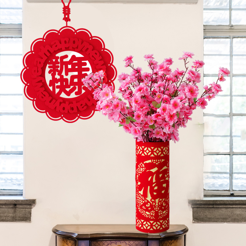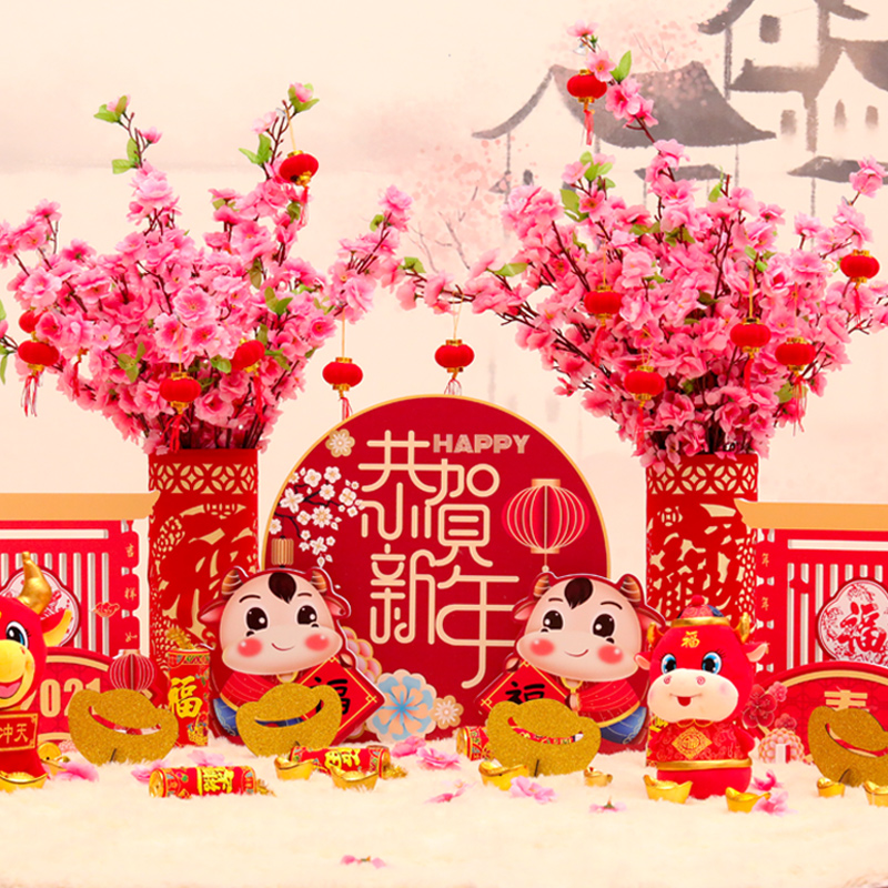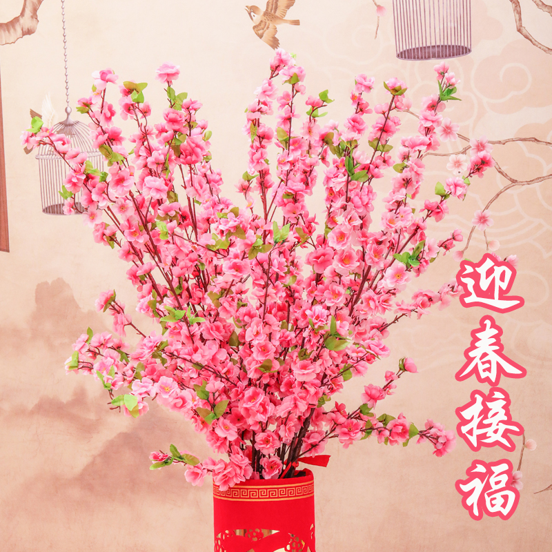 Simulation Peach Blossom Branches Living Room Fake Flowers Home Plastic Drying Flowers Spring Festival Swaying Pieces Indoor and Peach Blossom Branches Decoration
