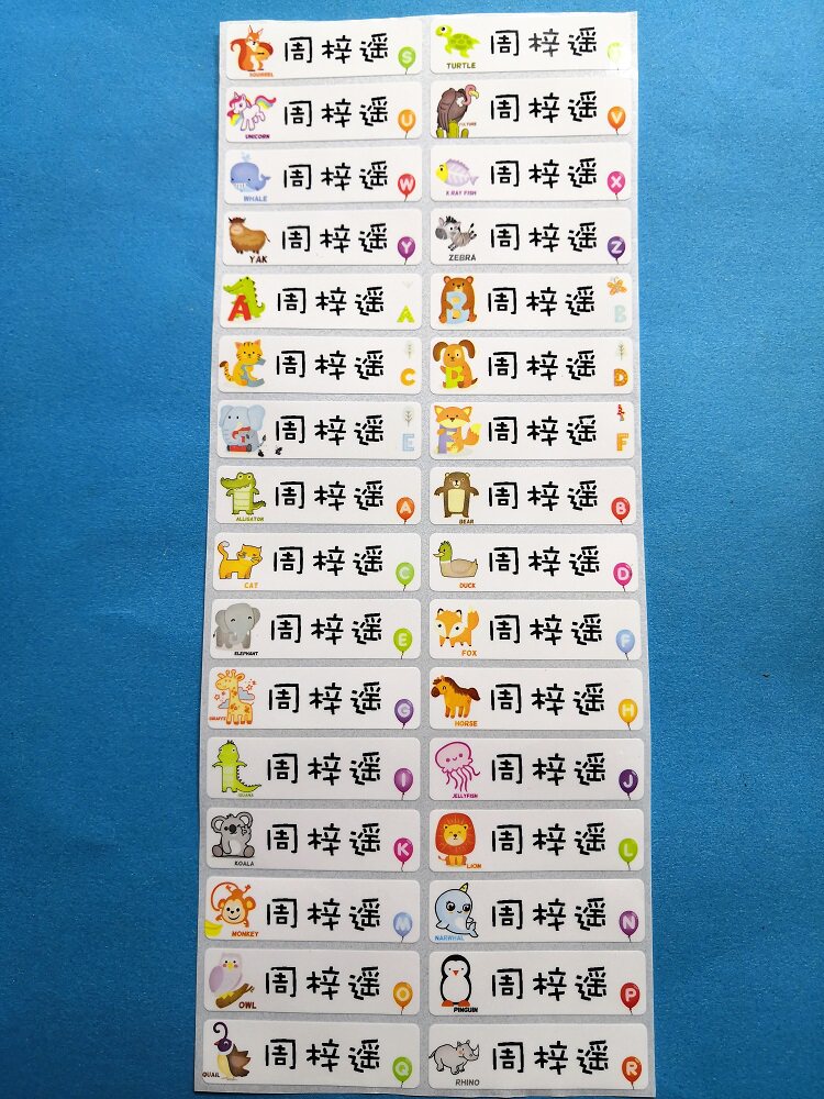Q Edition Animal Alphabet Name Stickers Paper Printable waterproof minimalist Name Sticker consumable name stickers 46 * 13 Specifications
