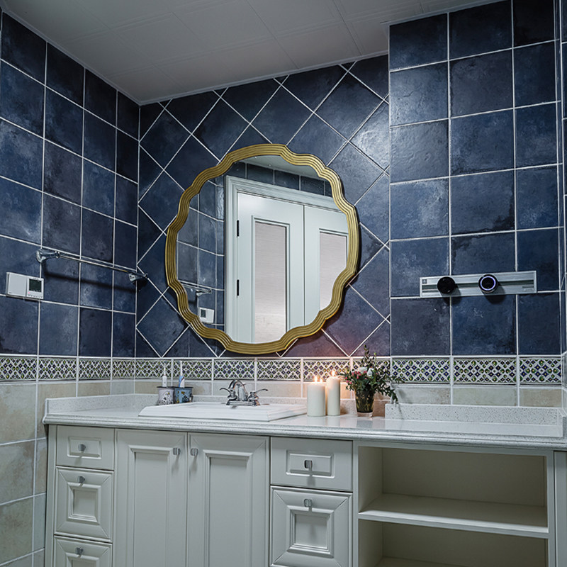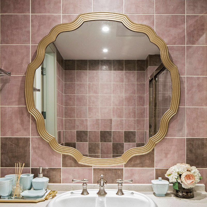 American Bathroom Mirror Round Makeup Room Wall-mounted Wash Makeup Mirror Genguan Background Wall Light Lavish Decorative Mirror