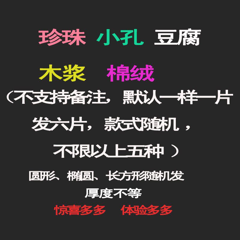 Pearl Powder Bashing (6 Pieces 1 Box) Small Hole Powder Bashing (6 Pieces 1 Box) Wood Pulp Powder Bashing (6 Pieces 1 Box) Bamboo Charcoal Powder Bashing (6 Pieces 1 Box) Note