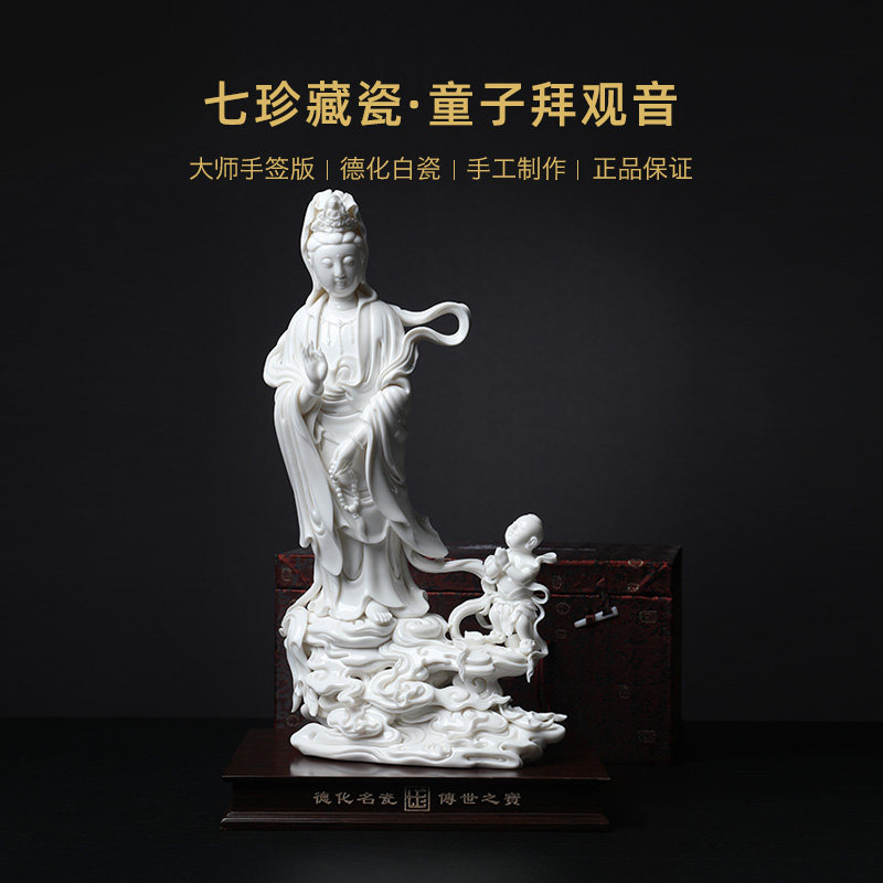 Dai Yutang ceramic ornaments "16-inch children worship audio-visual" Su Youde white porcelain Buddha like home decorations