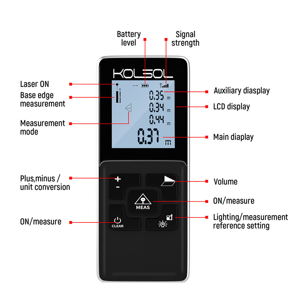 Handheld liquid crystal digital display laser rangefinder KOLSOL K100 with gradienter and graduated scale