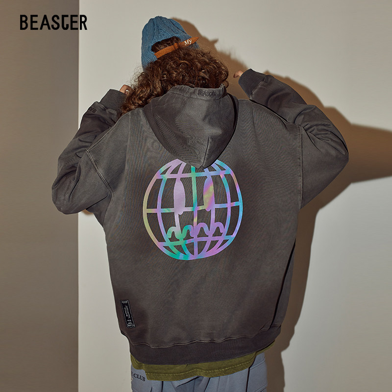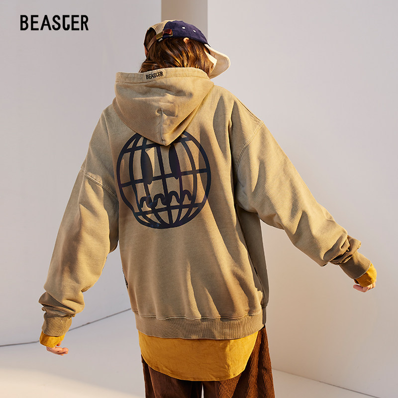 BEASTER hooded sweatshirt male demon earth grimace color tie-dye couple outfit autumn and winter new loose tide