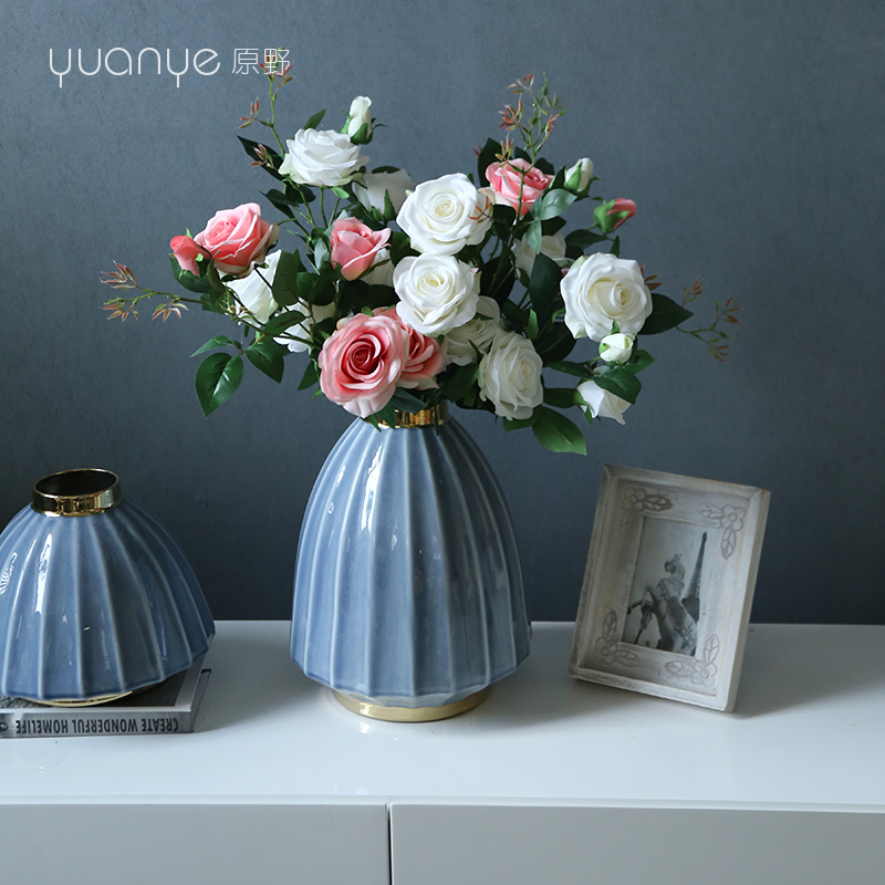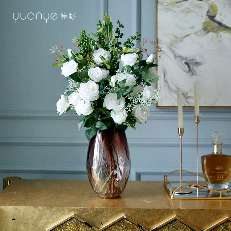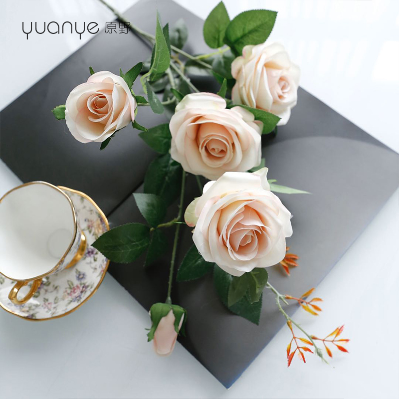 Rose Flower Emulation Flower Fake Flowers Single White Living Room Pendulum upscale Wedding Celebration Hands bouquet Bouquet Silk Furnishing Decoration
