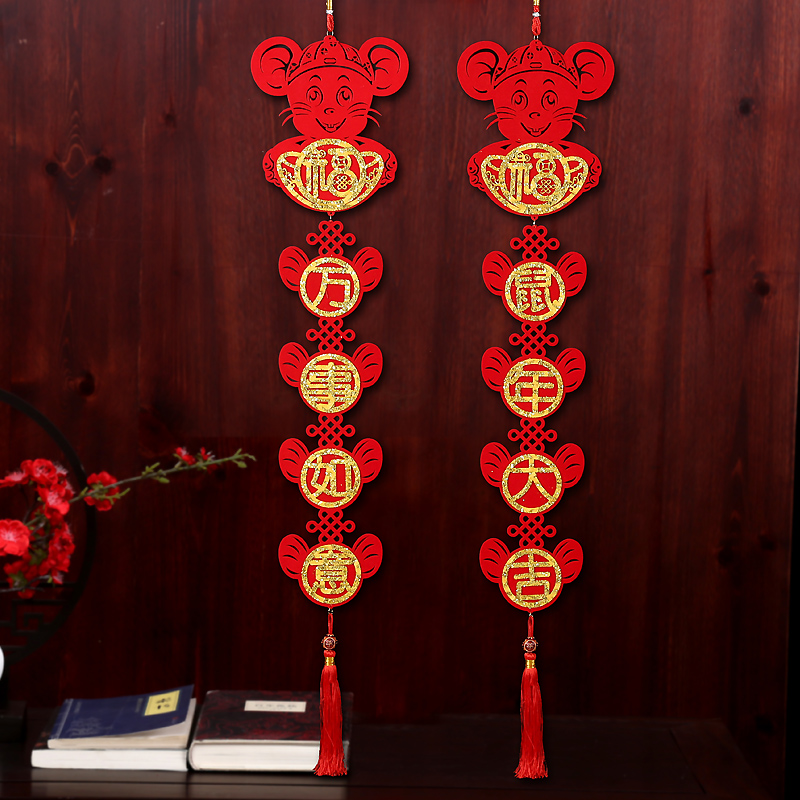 Solid-card-in-card B bronze money fish big (a pair) double-color imprint rat foal double-color imprint spring double layer-color Inprint Lunar New Year double fish couplets (a pair) Yuanbao couplets (one pair)