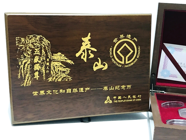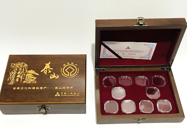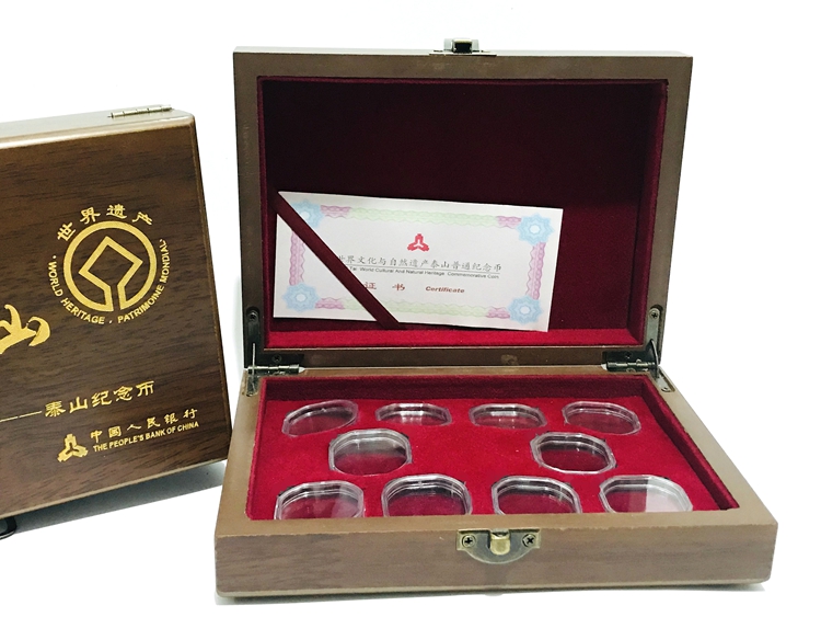 2019 Taishan commemorative coin protection box World heritage Taishan coins 5 yuan a collection box packed wood box ten pieces