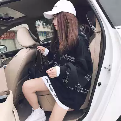 European station net red medium and long version long sleeve hooded sweatshirt women 2020 Winter new women's lazy wind plus velvet coat tide
