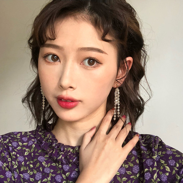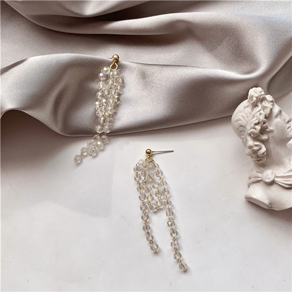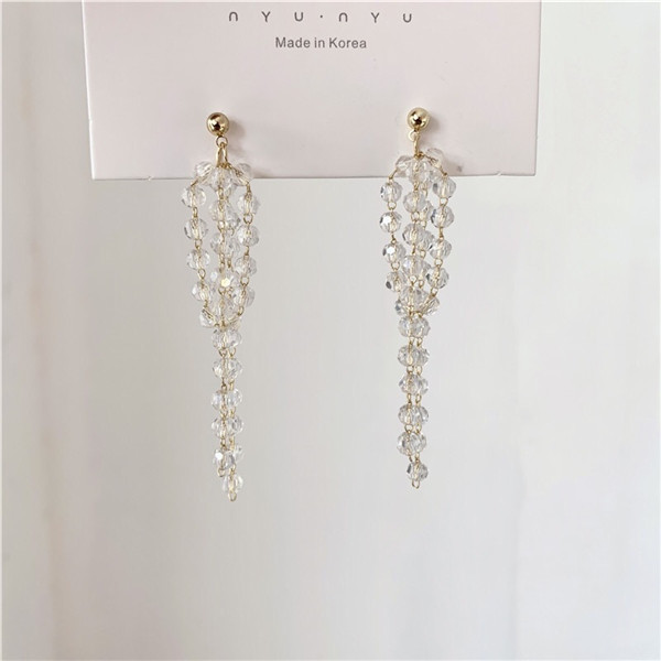 Net red Korean super fairy long version tassel beaded earrings women 2021 new trendy face thin wild temperament earrings