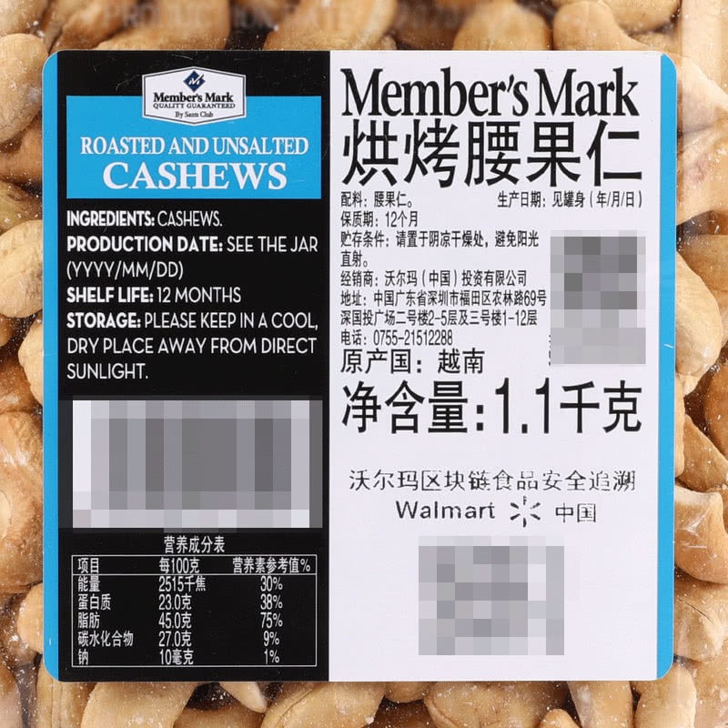 Sam Shop produced Members Mark Vietnam imported baked original cashew nuts 1100g cashew nuts in November
