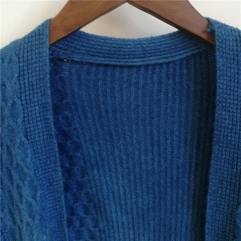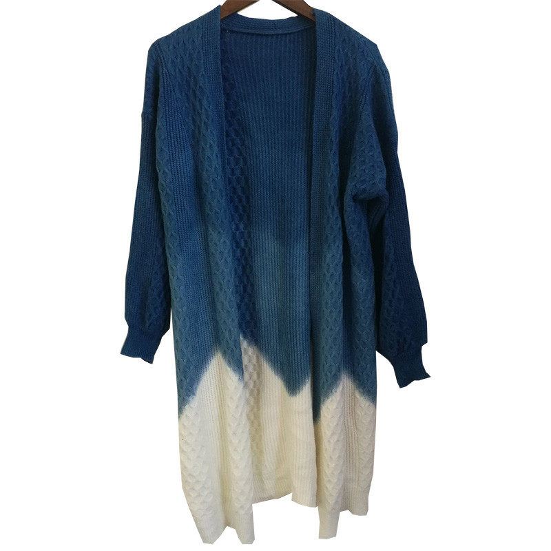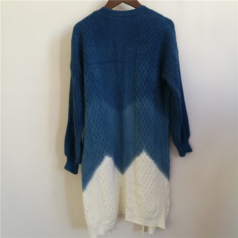 Tie-dyed sweater jacket female Yunnan Dali Bai ethnic handmade blue dyed plant dyed wool sweater female cardigan medium and long version