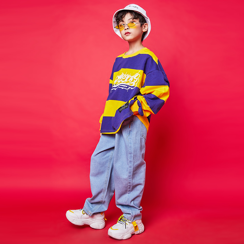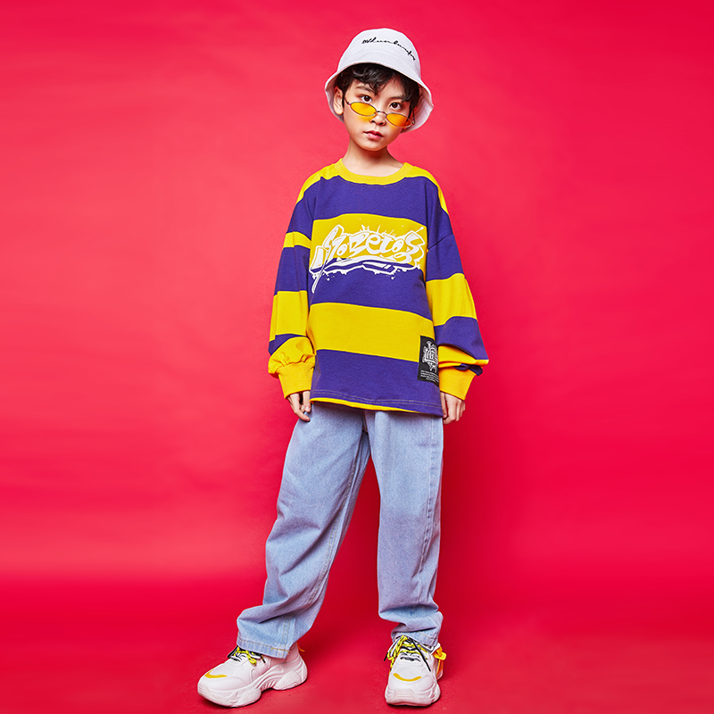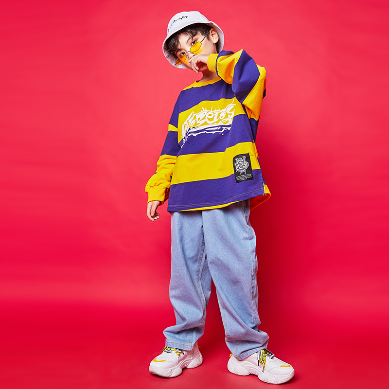 Toddler's hip-hop set boy's hip-hop handsome hiphop costume retro striped long sleeve children's hip-hop costume