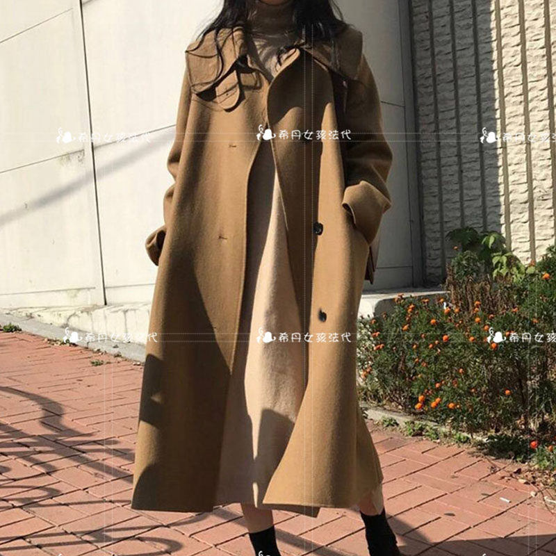 sandro asw double face cashmere big coat woman 2021 autumn winter long version over kneecap windy wool fur coat