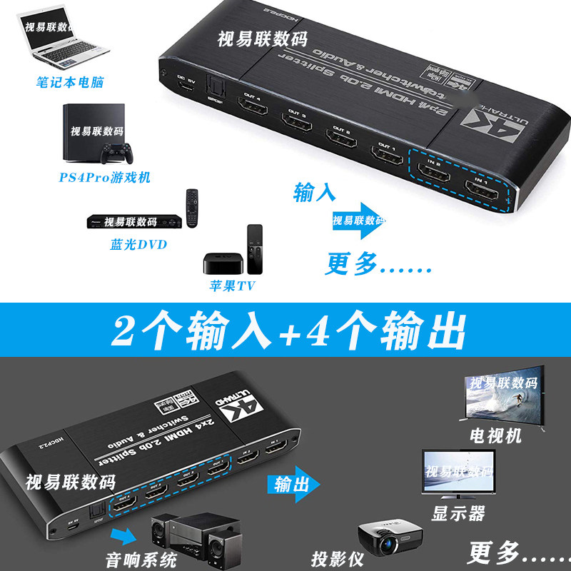 HDMI2 0 switcher dispenser 4K60 Four-in-one 2 in-4 out of two-in-four-out HDCP2 2 deciphers