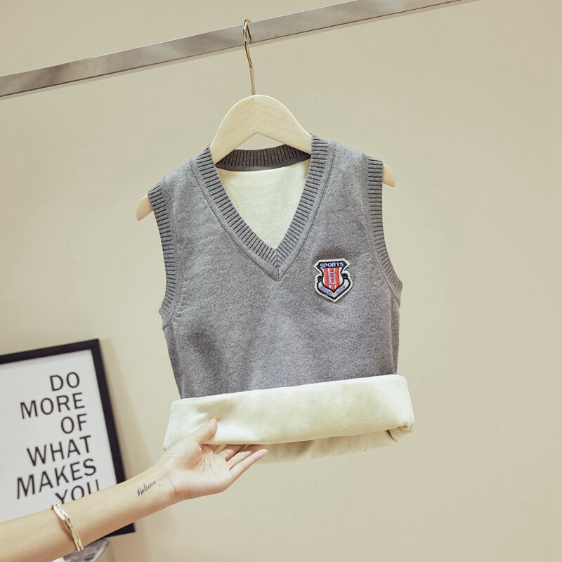 Children's vest autumn and winter thickened plus plush boys' sweater vest girls baby knit sweater in the big boy horse clip