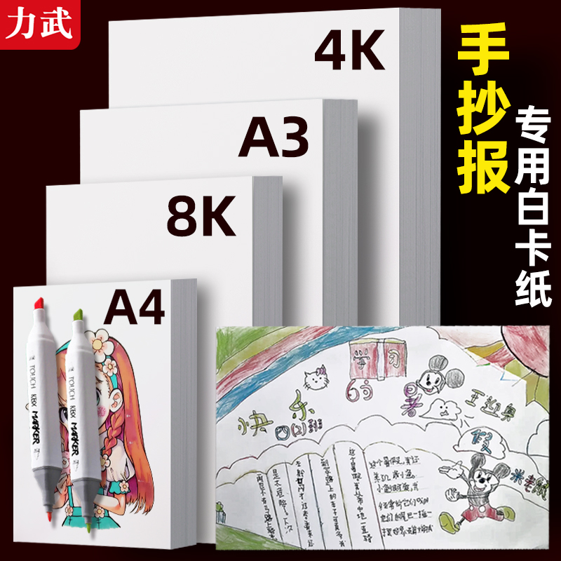Dutch white cardboard white cardboard thickened art special drawing paper marker pen hand-painted a3 handwritten newspaper special a4 paper drawing paper 4k8 open 8k large square hard 300g white cardboard