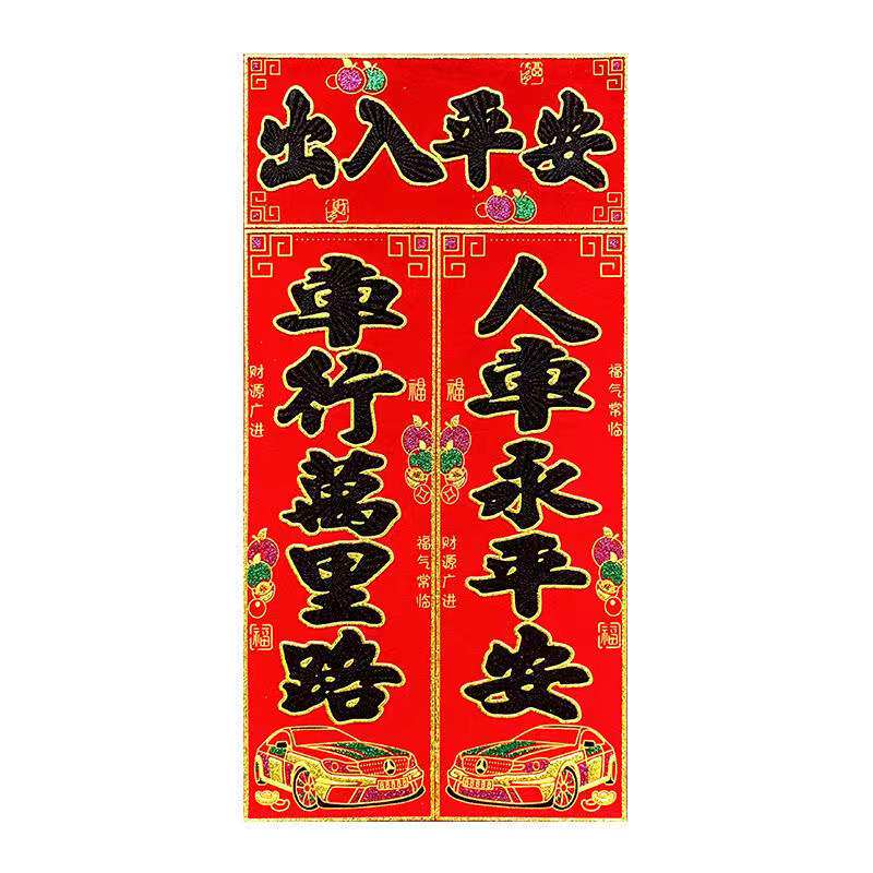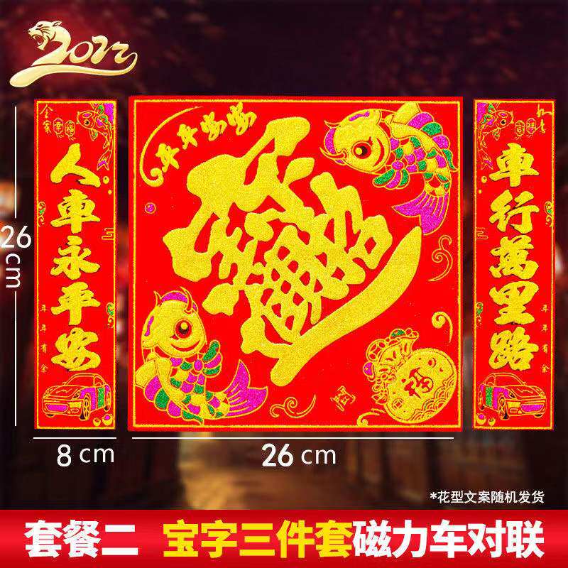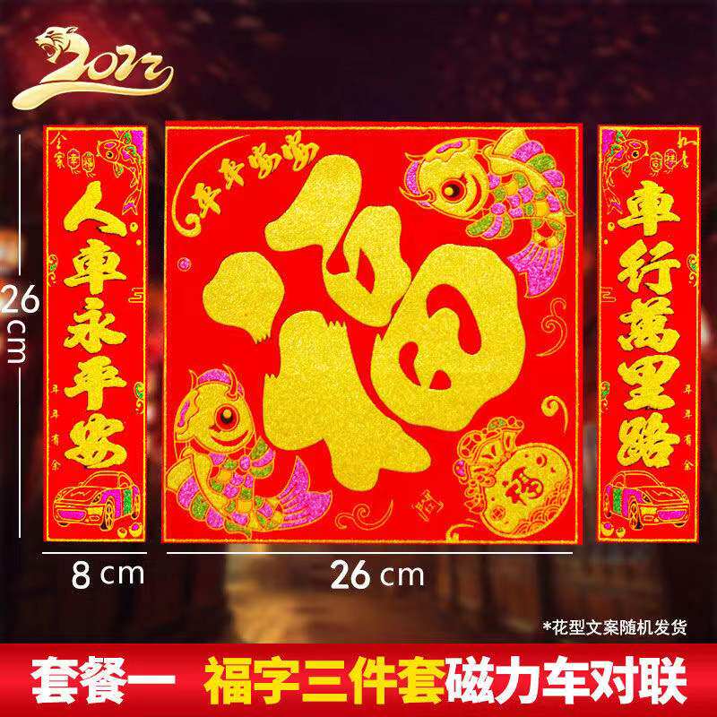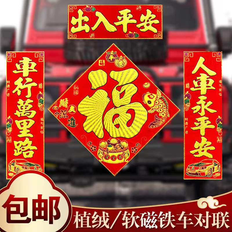 Year of the Tiger couplet car magnetic car couplet flocking trolley truck battery mountain wheel car decoration Spring Festival bronzing blessing