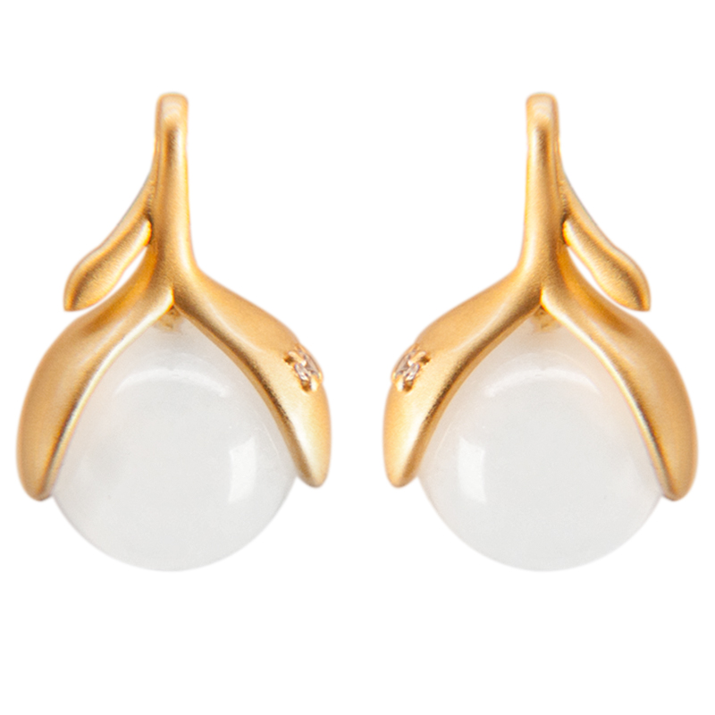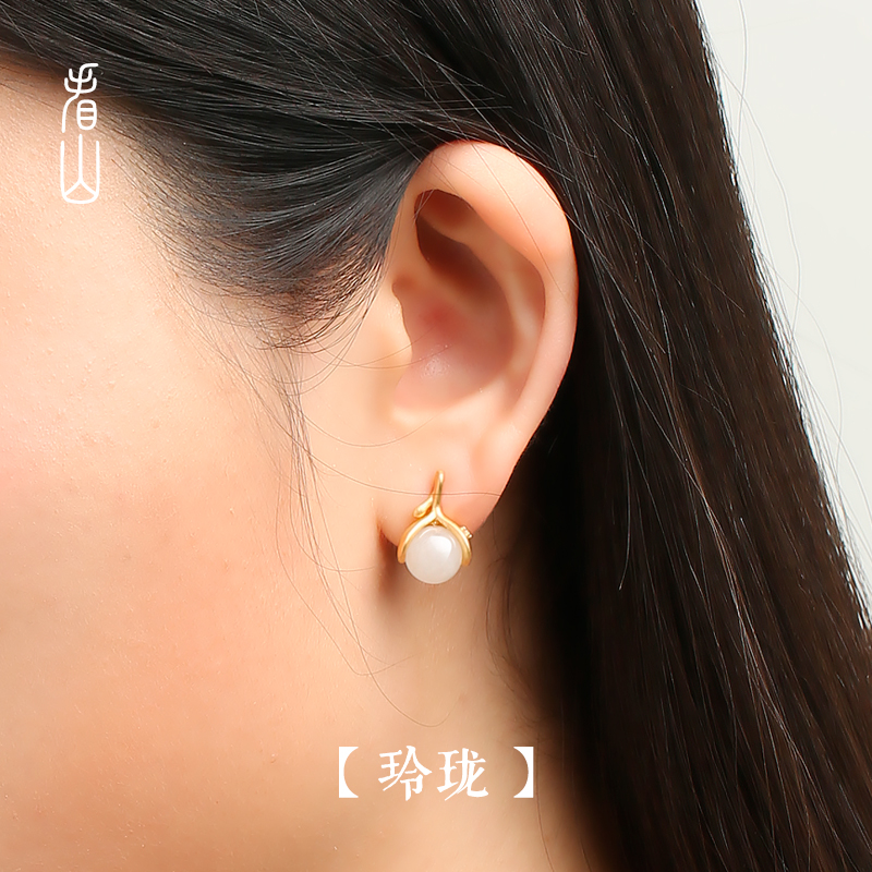 Look at the mountains) Lingong) and Tian Bai jade earring nails female silver emerald mother's flag gown with new Chinese style ancient wind earrings pendant-Taobao