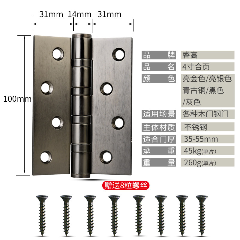 Blue Bronze-4 inch flat hinge Matte Black-4 inch flat hinge Gray-4 inch flat hinge Bright Silver-4 inch flat hinge Bright Gold-4 inch flat hinge Green Bronze-4