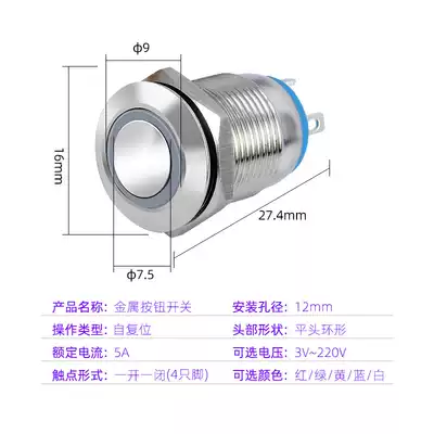 12mm metal push button switch Self-reset with light button Computer modified ring light power start boot button