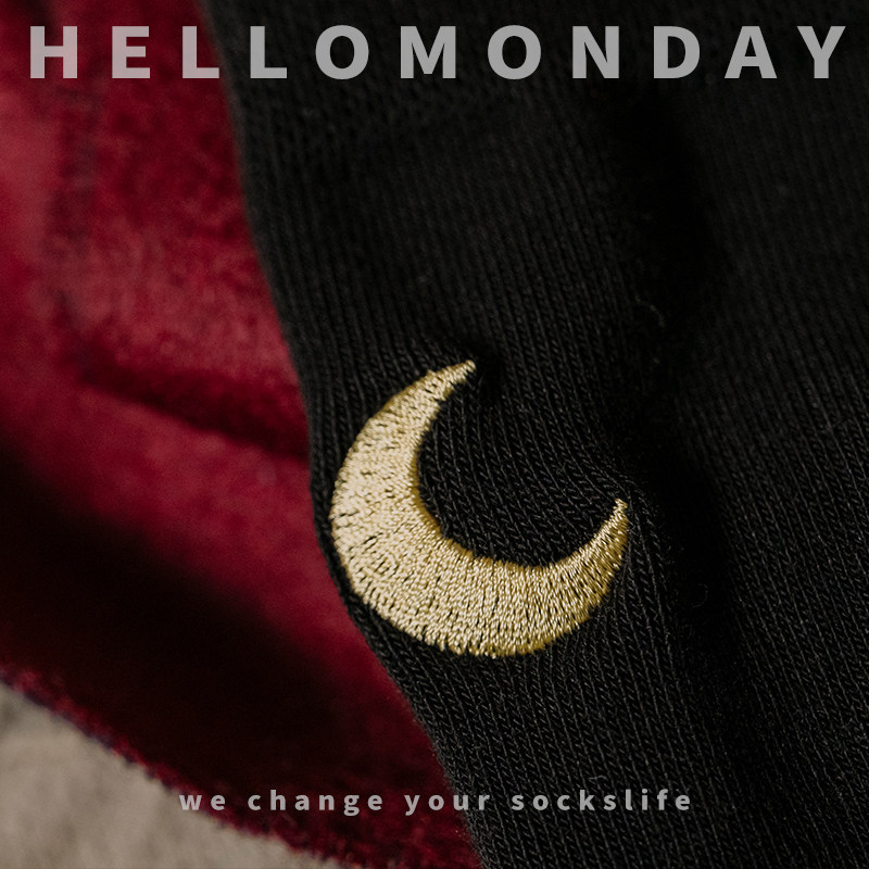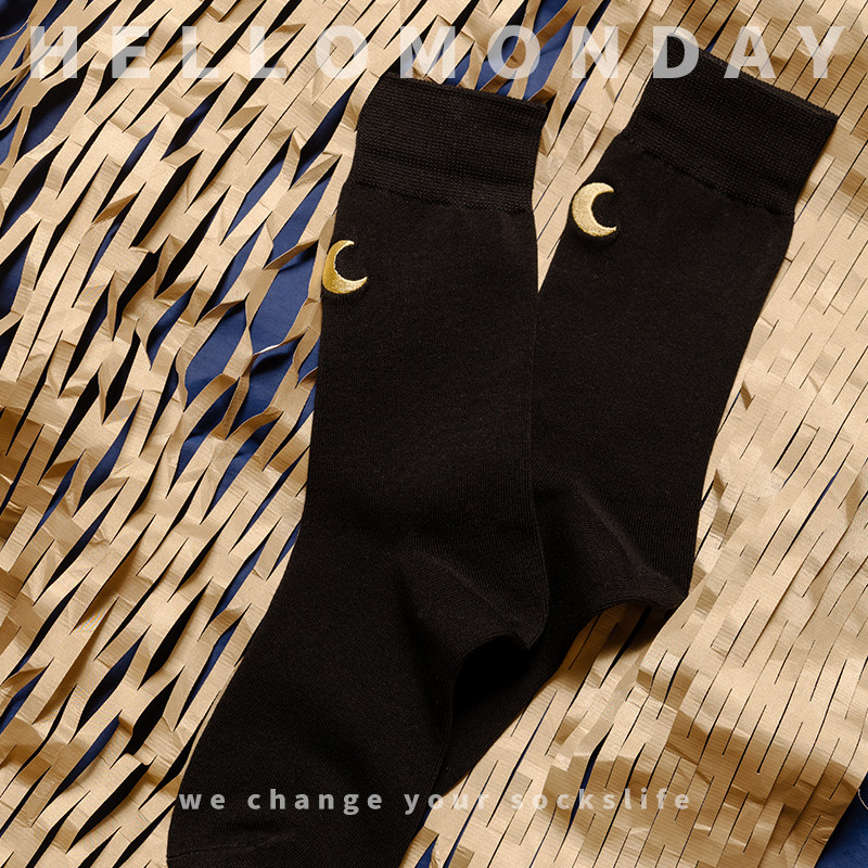 HELLO MONDAY black socks women's socks men's embroidered moon socks with leather shoes Japanese ins tide tie