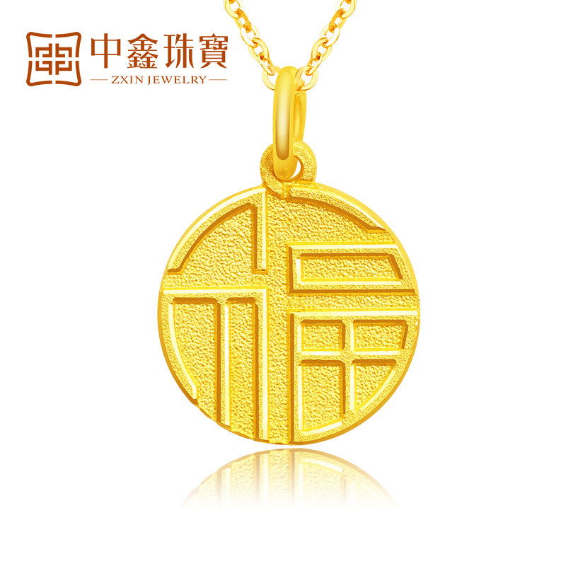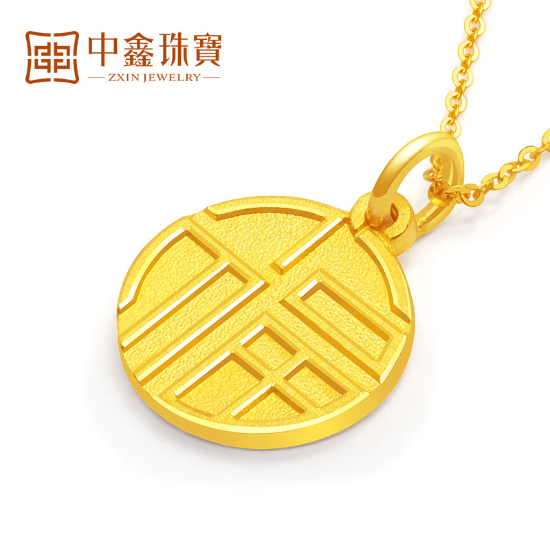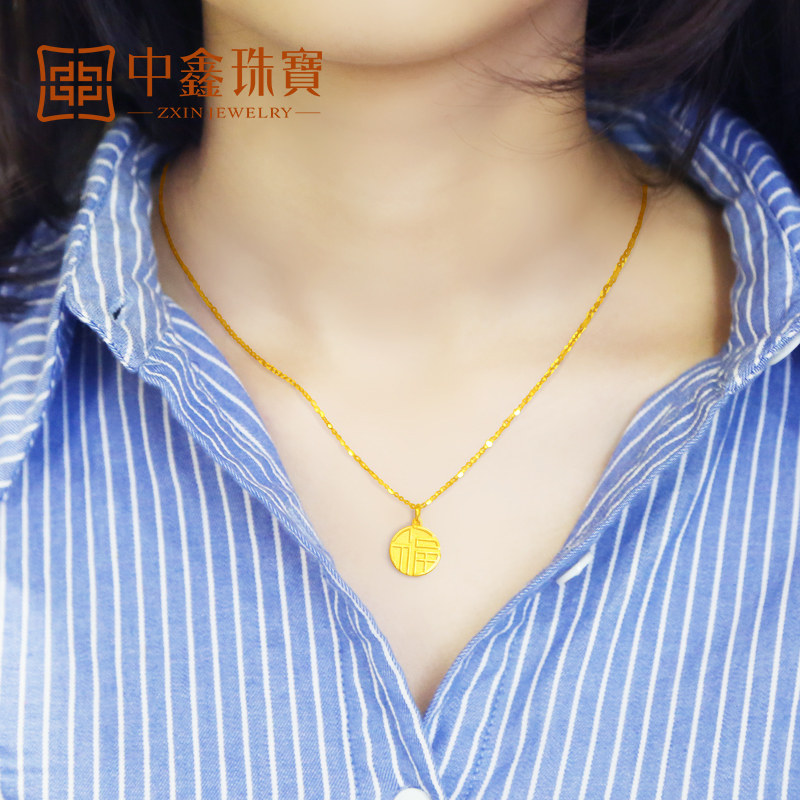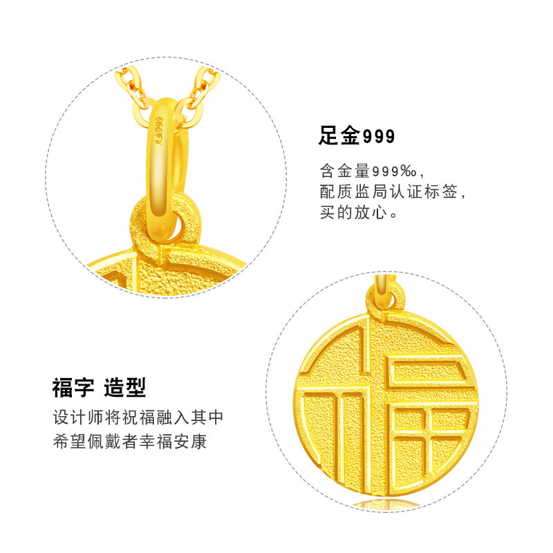 Gold Fortword pendant female small foe 999 foot gold necklace pendant with round plate pure gold pendant new gift