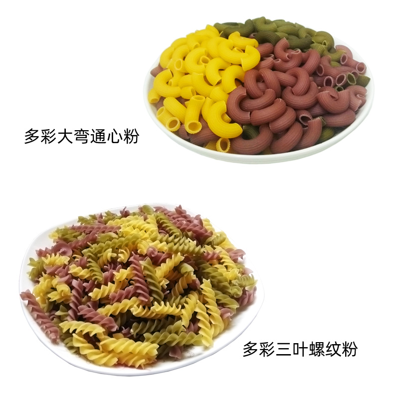 Colorful three-color pasta fruit and vegetable big bend macaroni pasta children's hollow spaghetti 4 catties whole box of food