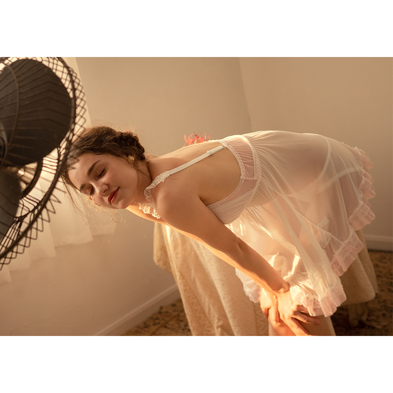 Japanese cute girl pajamas autumn winter transparent net dress playful pompy skirt private room sweet temptation