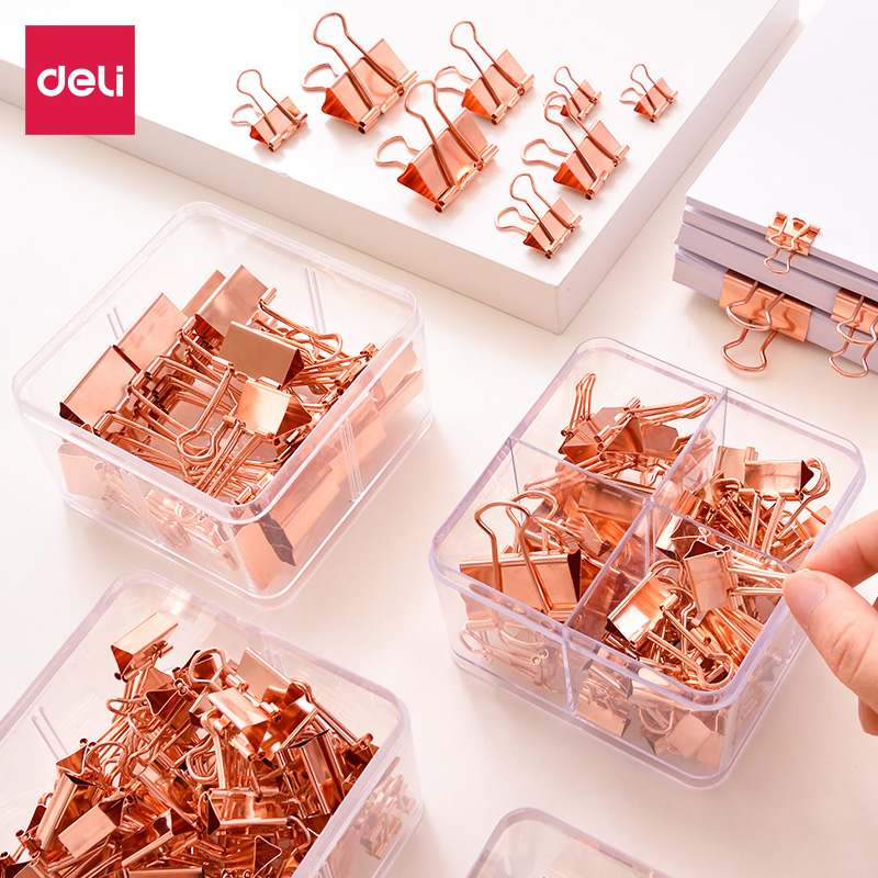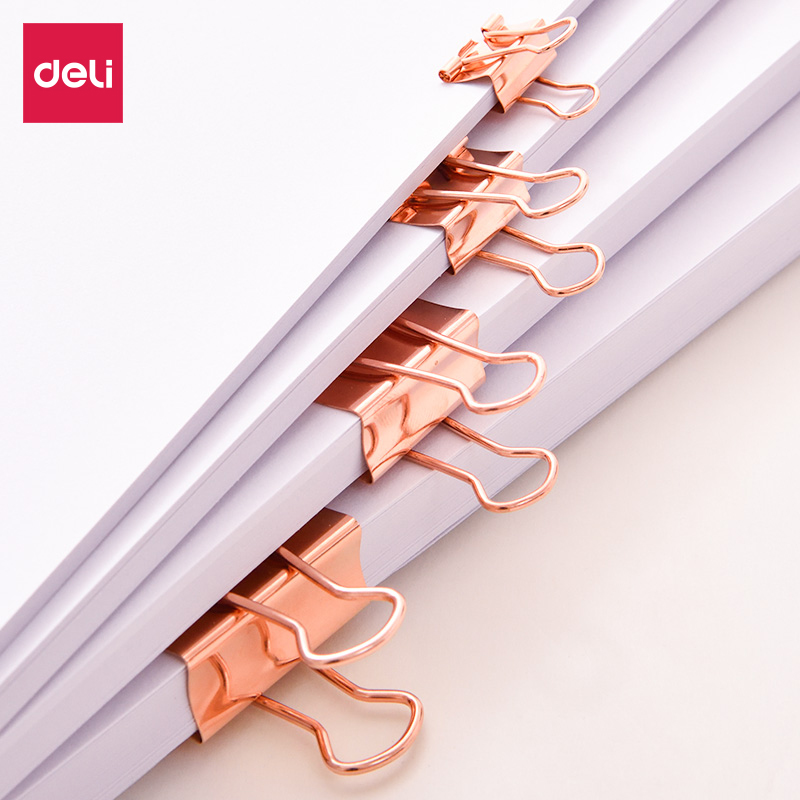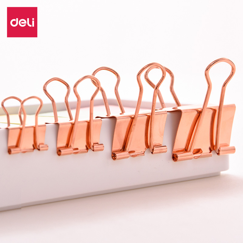Deli rose long tail clip set information clip iron ticket clip fish tail clip large small multi-functional office stationery supplies stainless steel butterfly clip file exam paper book clip rose gold clip