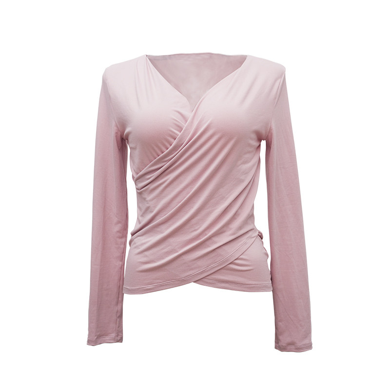 South Korea's new rose women's blouse professional fitness clothing brushed soft cross v-neck temperament slim top T-shirt