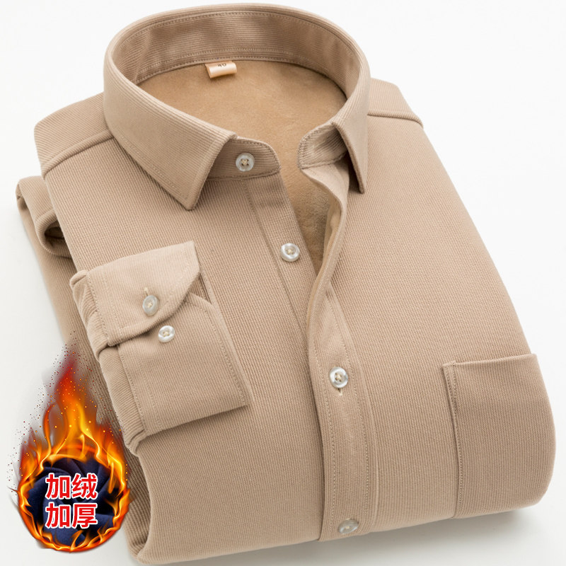 Winter Warm Light Wick Suede Shirt Man Gvet Thickened Pure Color Long Sleeve Middle-aged Casual Loose Dad Shirt Jacket